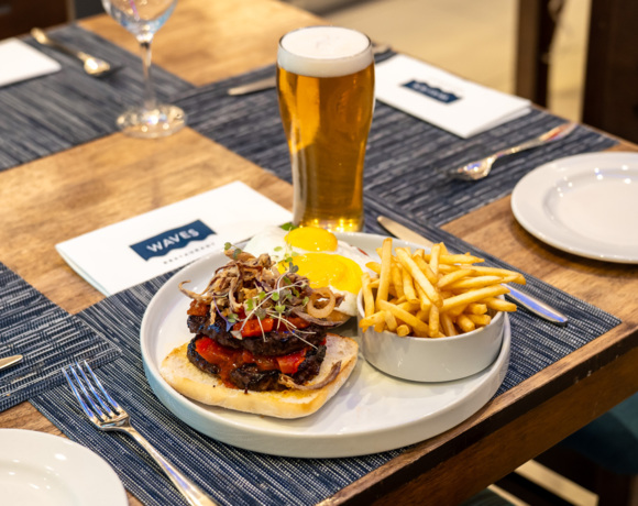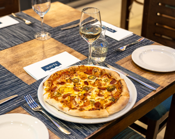 WAVES, our very own Italian-inspired restaurant, boasts a menu focused around fresh, locally sourced ingredients. WAVES Restaurant is located on the ground floor of our hotel and features a show-kitchen and wood-fired pizza oven. Whether you’re in the mood for a romantic evening, a night out with the family or an office function, WAVES is the ideal place to sit back, relax and enjoy great food.