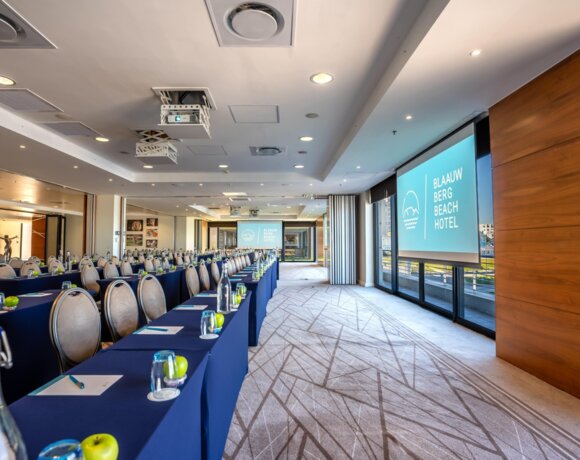 Blaauwberg Beach Hotel offers a range of 11 venues across 4 floors. In each of our modern venues, enjoy streaming natural light with floor-to-ceiling windows while allowing uninterrupted sea views and a spectacular backdrop of Table Mountain and Robben Island. Accommodating small meetings of 8 delegates through to a large conference of 180 delegates. Our venues are designed to inspire and to offer an alternative to the conferencing norm.