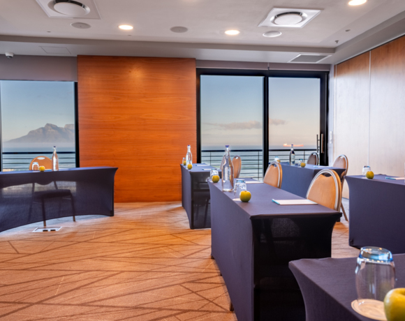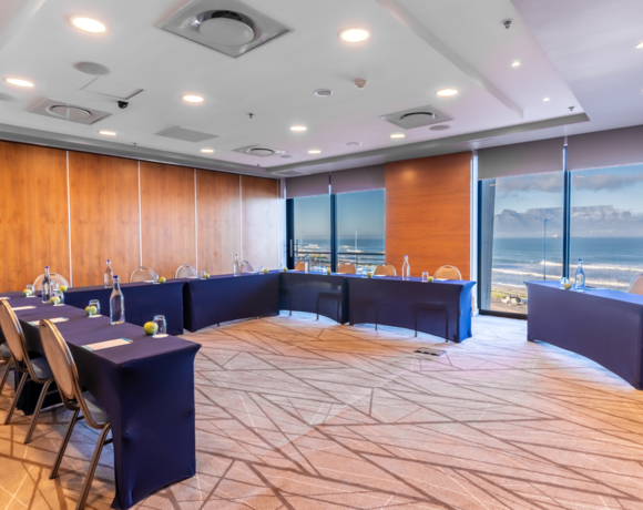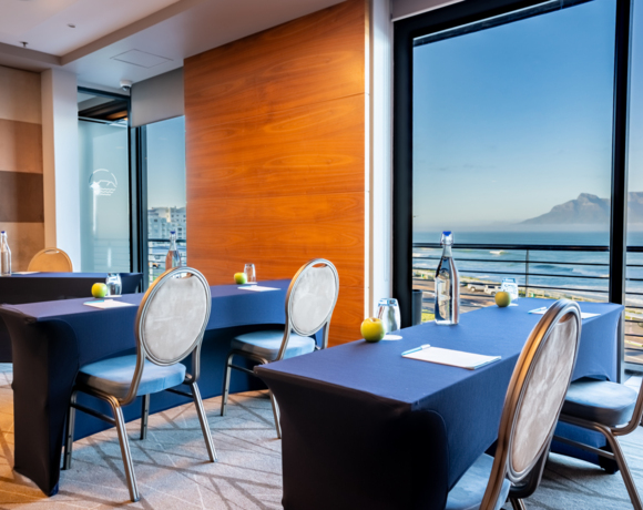 The Robben Island Room, features a beautiful sea-side view and is ideal for smaller conferences, seating 8 delegates.